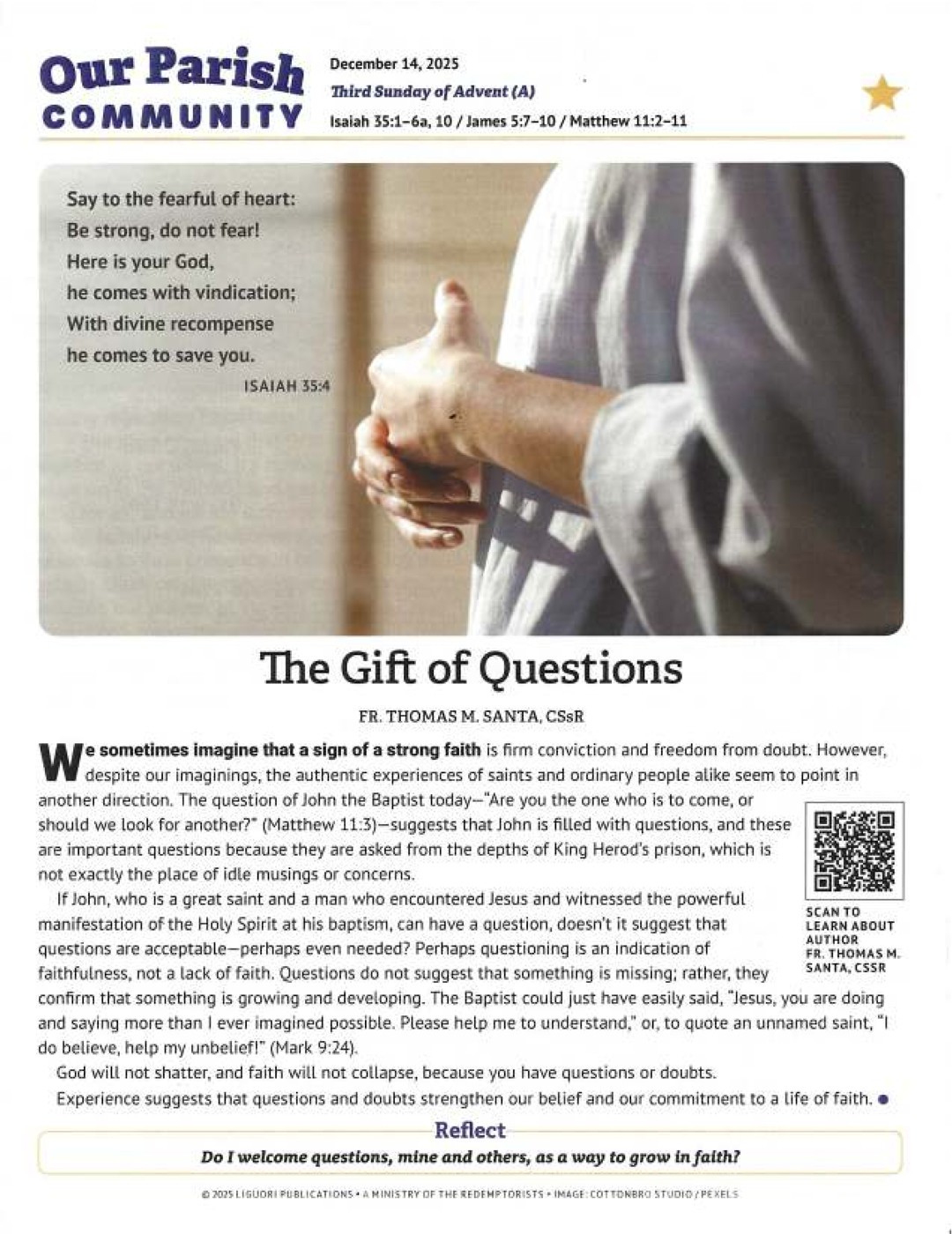 Sun. 12/14 CCD class for 6th-8th grade @ HT church hall 10:00am-11:30am